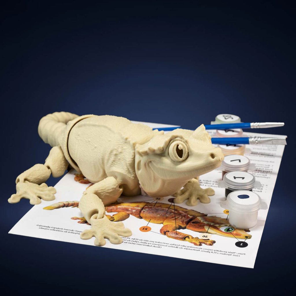Detailně zpracovaný gekon s dlouhým tělem a plnou pohyblivostí, ideální pro pečlivé vybarvování i realistické pózování.