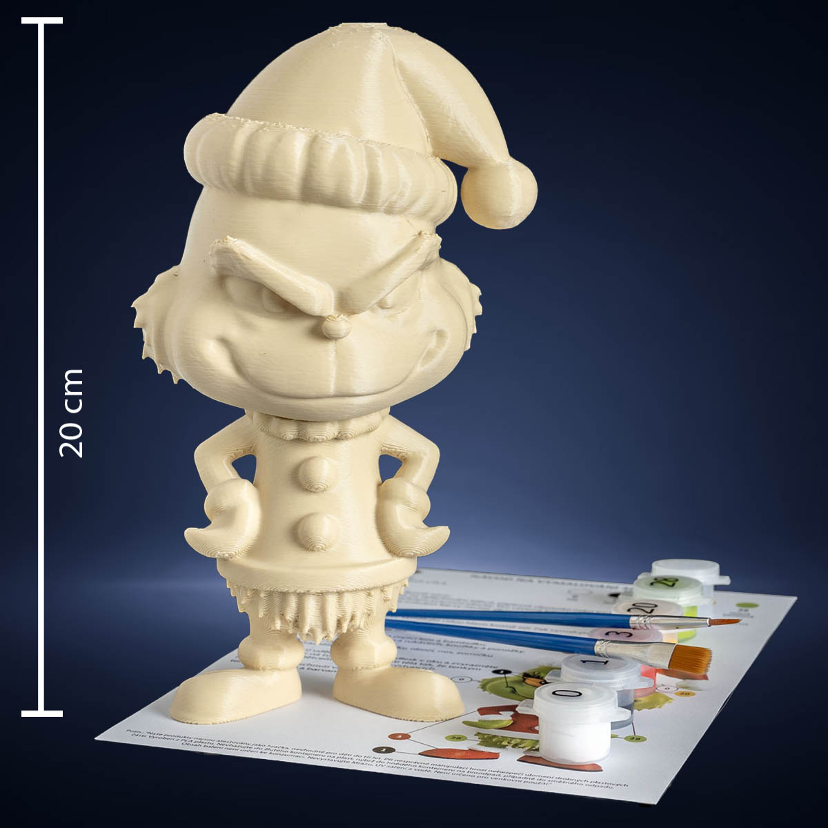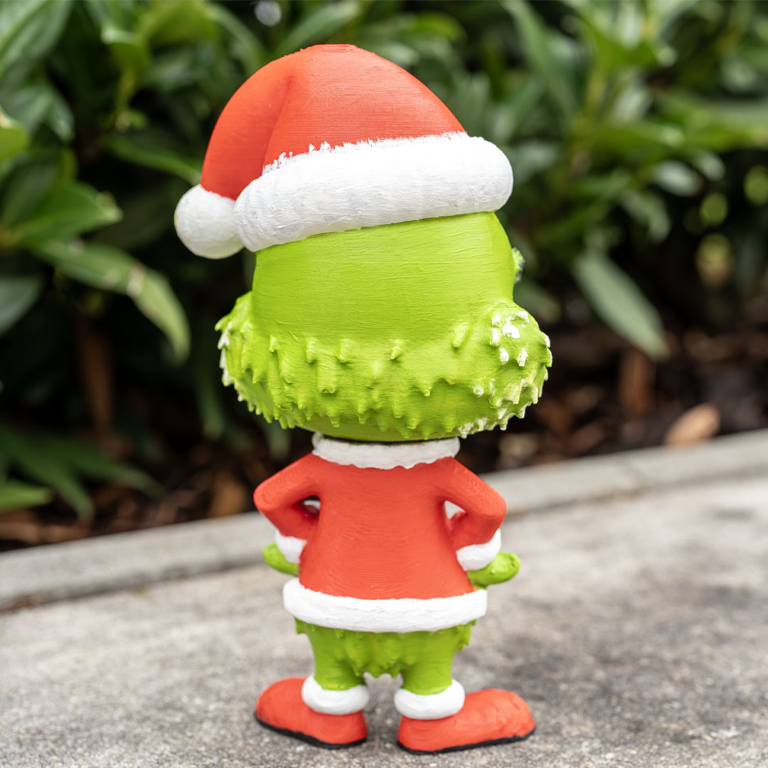 Velký úsměv, vánoční čepice a typická zelená tvář – figurka po nabarvení okamžitě zaujme, a díky otočné hlavě si ji vystavíš přesně podle sebe.