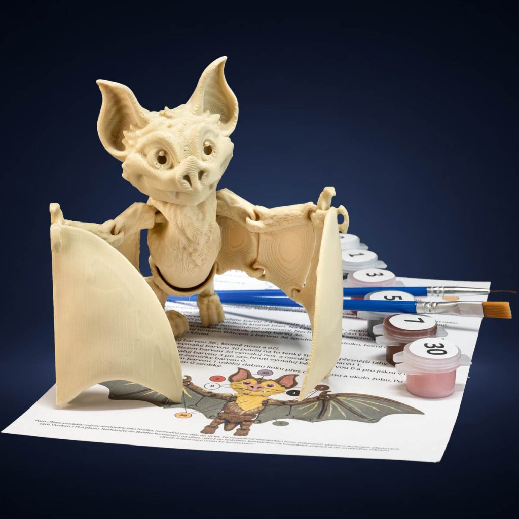 Originální 3D figurka netopýra s plně pohyblivým tělem a mávajícími křídly. Ideální kombinace jednoduchého malování a výrazného výsledku.