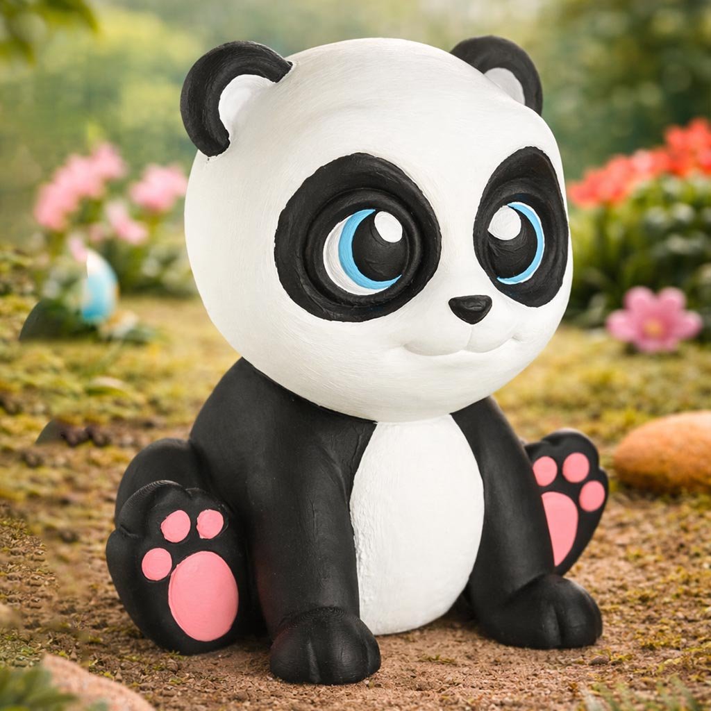 Velké oči, kulaté tvary a sedící poloha dělají z pandy ideální první figurku k vymalování i vystavení v dětském pokoji.