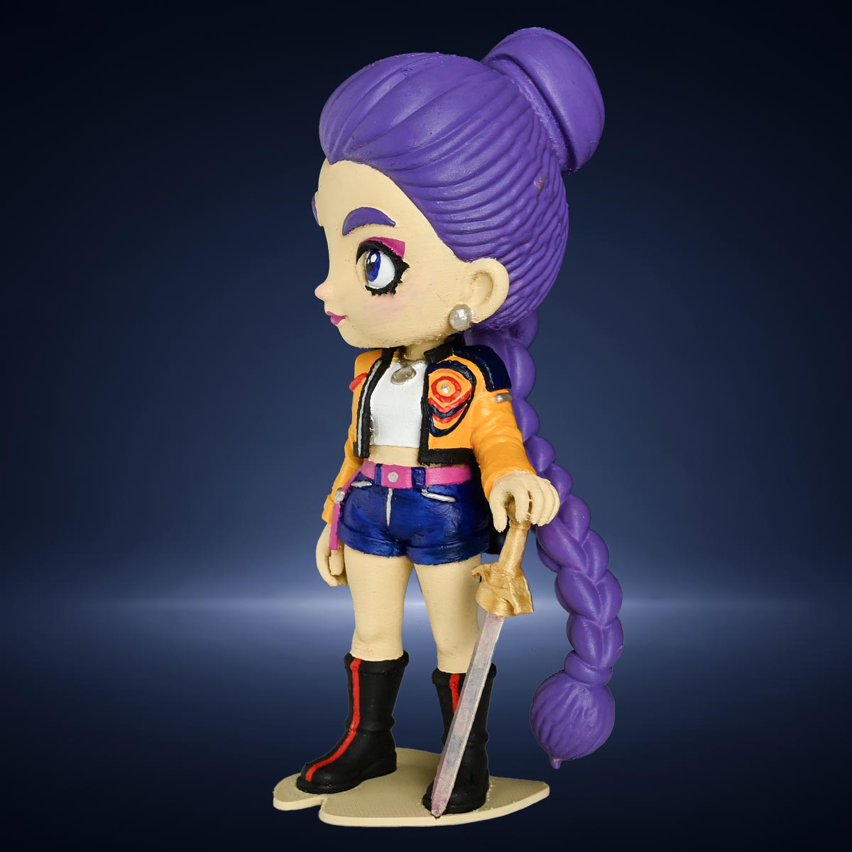 Dynamický postoj, moderní outfit a zbraň v ruce dávají Rumi osobitý vzhled. Hotová figurka vypadá skvěle na poličce i jako součást dětské sbírky.
